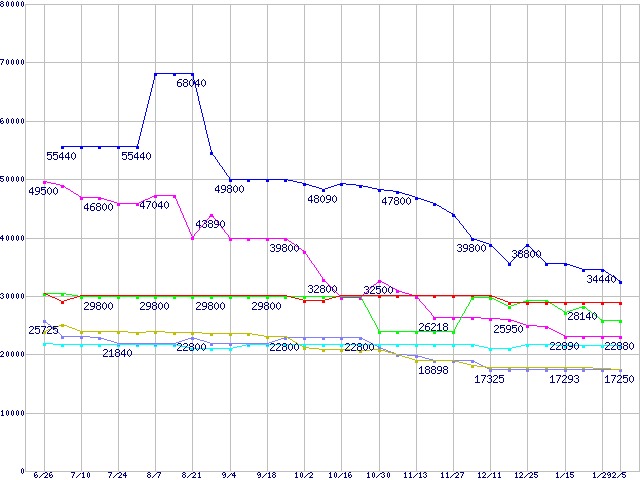 | [↑前グラフ]: | メモリ主要製品の最安値推移 |