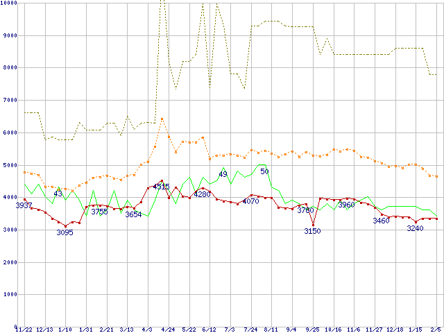 | PC2100 DDR SDRAM 256MB(CL2.5)の価格推移 |