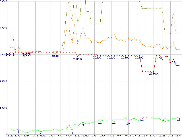 | PC2700 DDR SDRAM 1GB(CL2.5) ECC Registeredの価格推移 |