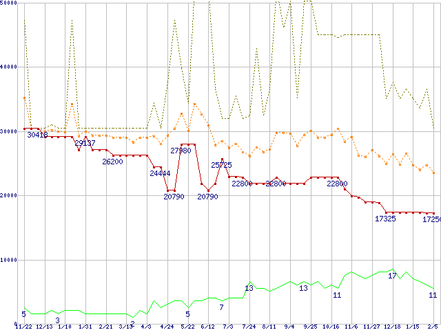 | PC2700 DDR SDRAM 1GB(CL2.5)の価格推移 |