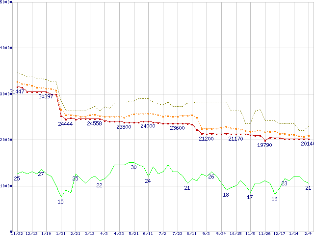 | Pentium 4 3GHz リテールパッケージの価格推移 |