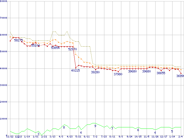| Opteron 244(1.8GHz) リテールパッケージの価格推移 |