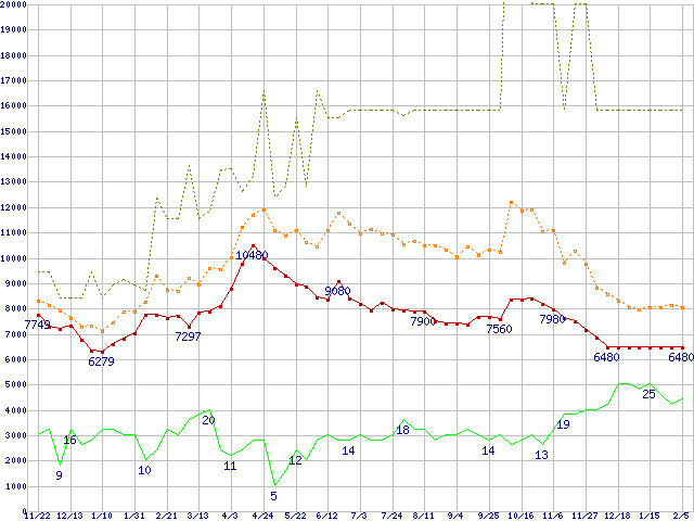 | PC3200 DDR SDRAM 512MB(CL2.5)の価格推移 |