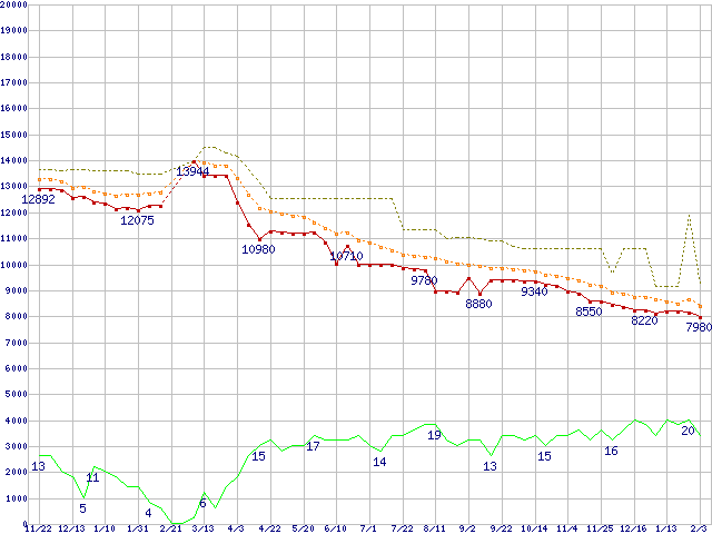 | Deskstar 7K250 HDS722512VLSA80 (120GB,8MB)の価格推移 |