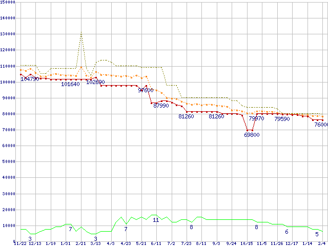 | Xeon 3.2GHz /L3 1MB(FSB533) リテールパッケージの価格推移 |