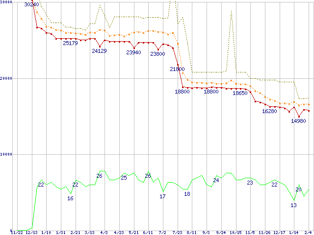| Athlon 64 3000+(2GHz,L2 512KB) リテールパッケージの価格推移 |