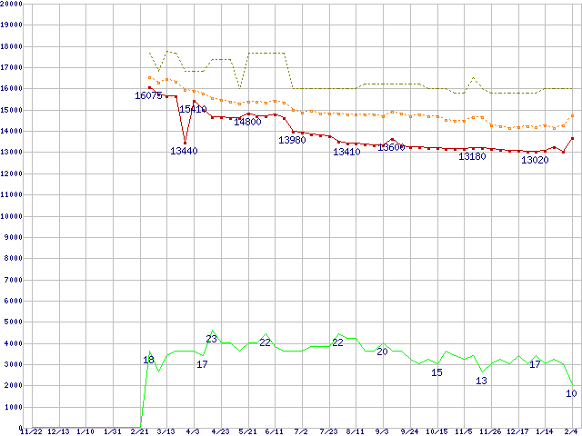 | Pentium 4 2.40A GHz リテールパッケージの価格推移 |