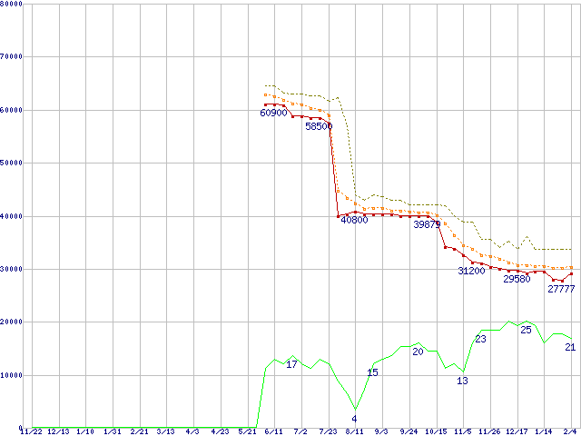 | Athlon 64 3500+(2.2GHz,L2 512KB) リテールパッケージの価格推移 |