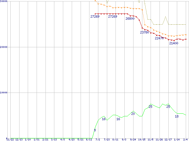 | Pentium M 725 (1.60GHz) リテールパッケージの価格推移 |