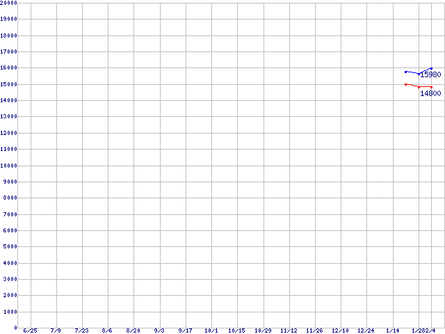 | [↑前グラフ]: | LGA 775 (FC-LGA4 ,FSB 800MHz,L2 1MB,Hyper-Threading,Prescott)の最安値推移 |