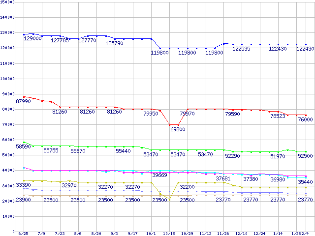 | ※製品名をクリックすると個別のグラフを表示します ※点線部は販売店が確認できなかった、または調査データがないことを示します | |