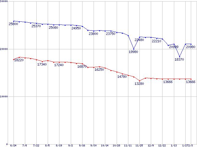 | [↑前グラフ]: | DiamondMax Plus 8 (7200rpm,2MB,Ultra ATA/133,FDB)の最安値推移 |