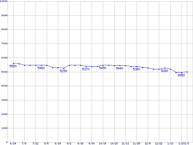 | [↑前グラフ]: | DiamondMax 16 (5400rpm,Ultra ATA/133,2MB,80GB/Platter,FDB)の最安値推移 |