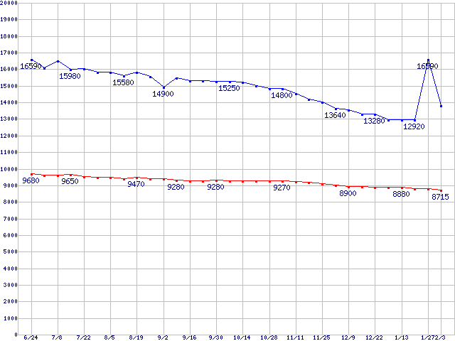| [↑前グラフ]: | WD Caviar (7200rpm,Ultra ATA/133,8MB)の最安値推移 |