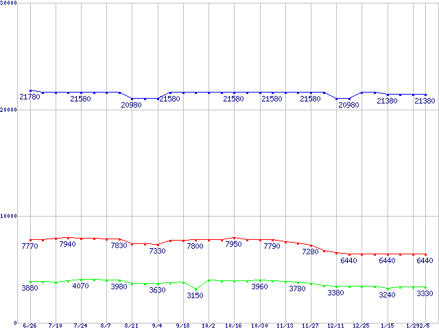 | [↑前グラフ]: | PC2700(DDR333) DDR SDRAM DIMM ECC対応 Registeredタイプの最安値推移 |