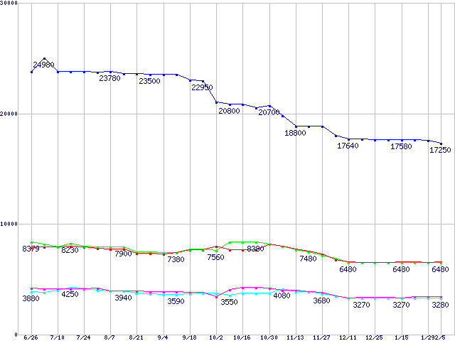 | PC3200(DDR400) DDR SDRAM DIMMの最安値推移 |