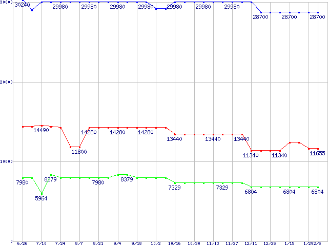 | [↑前グラフ]: | PC3200(DDR400) DDR SDRAM DIMMの最安値推移 |