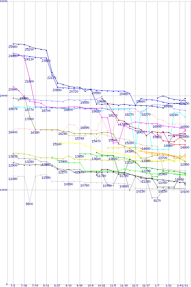 CPU主要製品(最安値2万円~3万円未満)の最安値推移