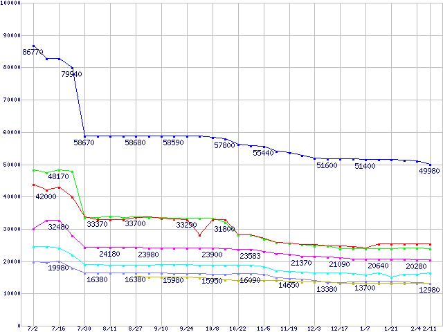 | [↑前グラフ]: | Socket 940・FSB 800MHzの最安値推移 |