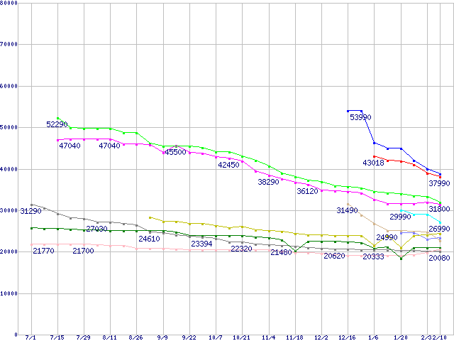 | [↑前グラフ]: | HDD主要製品(最安値1万5千円~2万円未満)の最安値推移 |