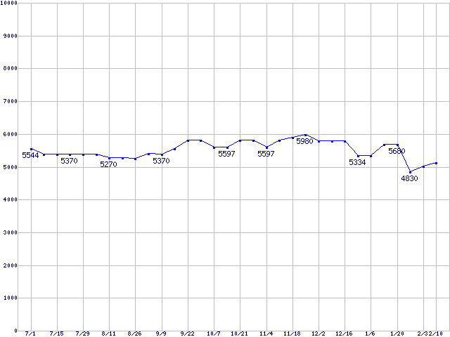 | [↓次グラフ]: | HDD 30GB~80GB未満の最安値推移 |