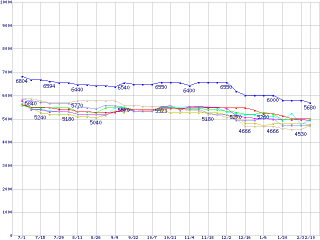 | ※製品名をクリックすると個別のグラフを表示します ※点線部は販売店が確認できなかった、または調査データがないことを示します | |