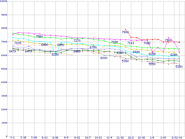 | [↑前グラフ]: | HDD 30GB~80GB未満の最安値推移 |