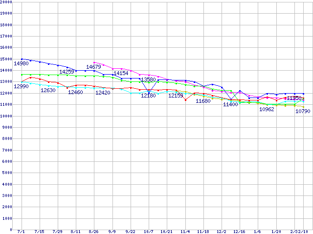 | [↑前グラフ]: | HDD 160~200GB未満の最安値推移 |