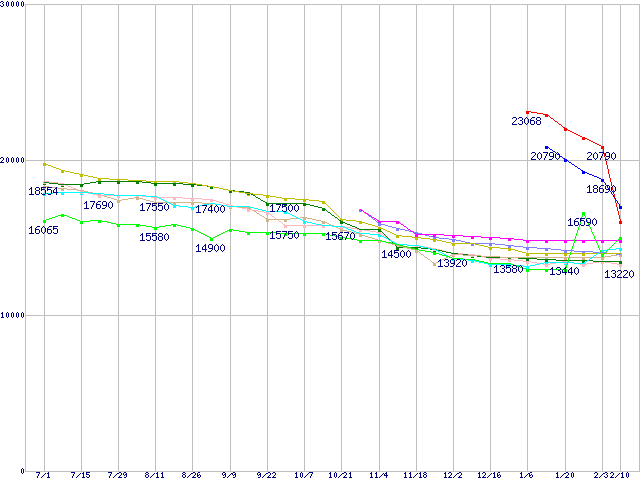 | [↑前グラフ]: | HDD 200~250GB未満の最安値推移 |
