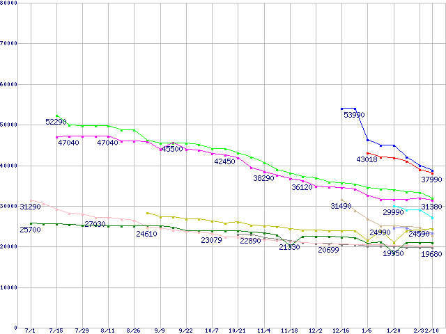 HDD 300GB以上の最安値推移