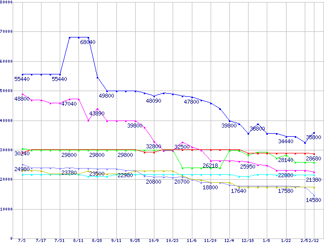 | [↑前グラフ]: | メモリ主要製品の最安値推移 |