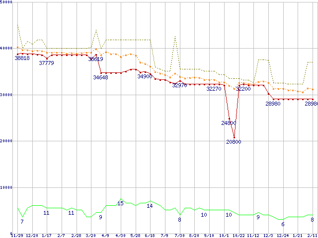 | Xeon 2.80GHz(FSB533) リテールパッケージの価格推移 |
