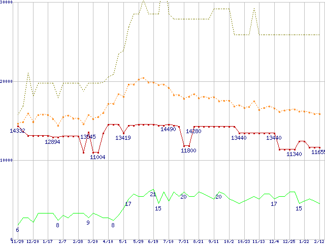 | PC3200 DDR SDRAM 512MB(CL3) ECC Registeredの価格推移 |