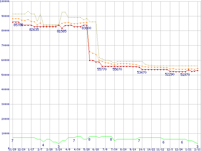 | Xeon 3.06GHz /L3 1MB(FSB533) リテールパッケージの価格推移 |