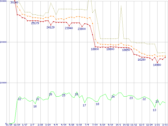 | Athlon 64 3000+(2GHz,L2 512KB) リテールパッケージの価格推移 |
