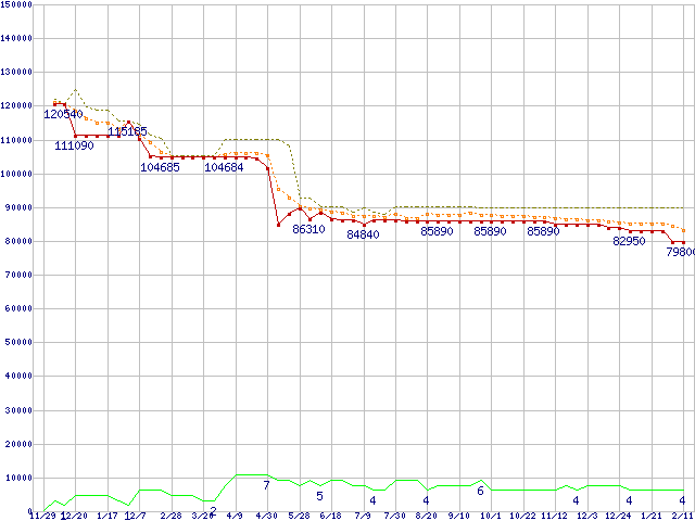 | Opteron 248(2.2GHz) リテールパッケージの価格推移 |