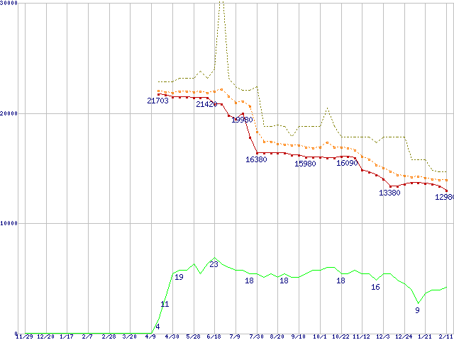 | Athlon 64 2800+(1.8GHz,L2 512KB) リテールパッケージの価格推移 |