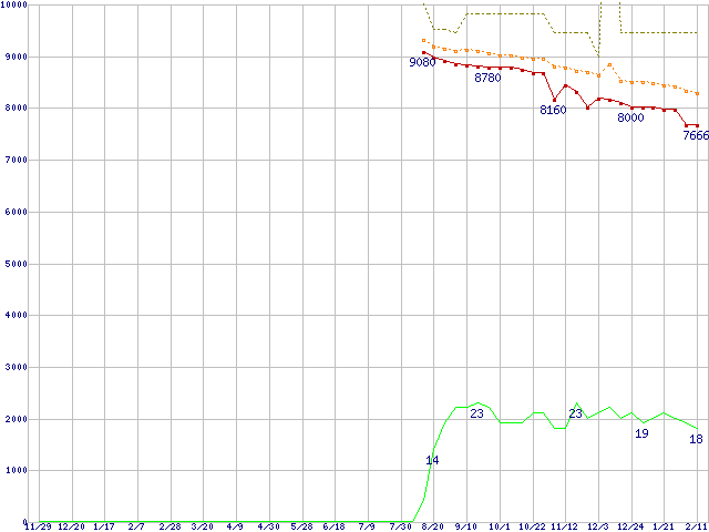 | Sempron 2500+(1.75GHz,L2 256KB,Socket A) リテールパッケージの価格推移 |