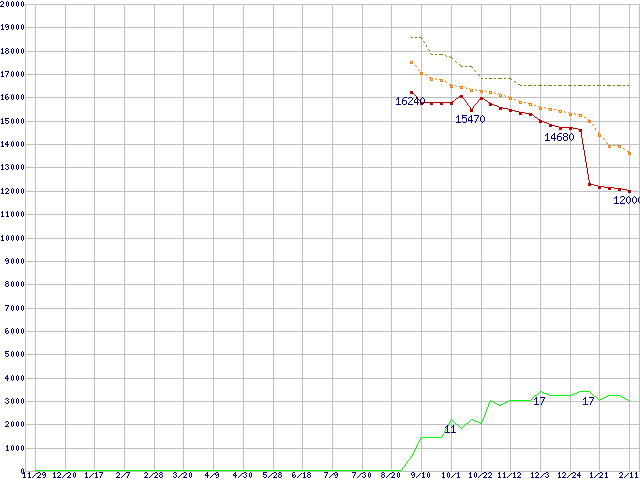 | Celeron M 360 (1.4GHz) リテールパッケージの価格推移 |