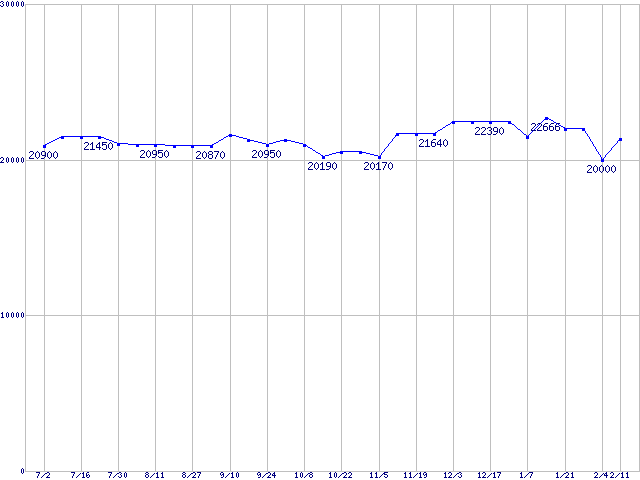 | Socket A (OPGA,FSB 400MHz,L2 512KB,Barton)の最安値推移 |