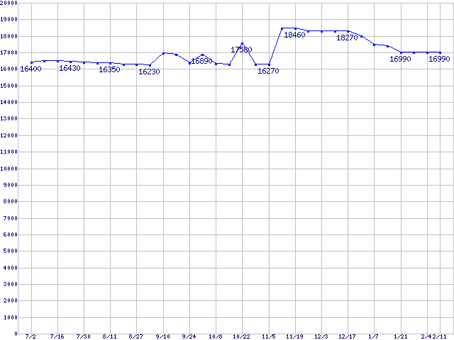 | [↑前グラフ]: | Socket A (OPGA,FSB 400MHz,L2 512KB,Barton)の最安値推移 |