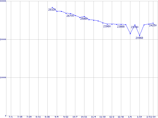 | [↑前グラフ]: | Deskstar 7K80 (7200rpm,Ultra ATA/100)の最安値推移 |