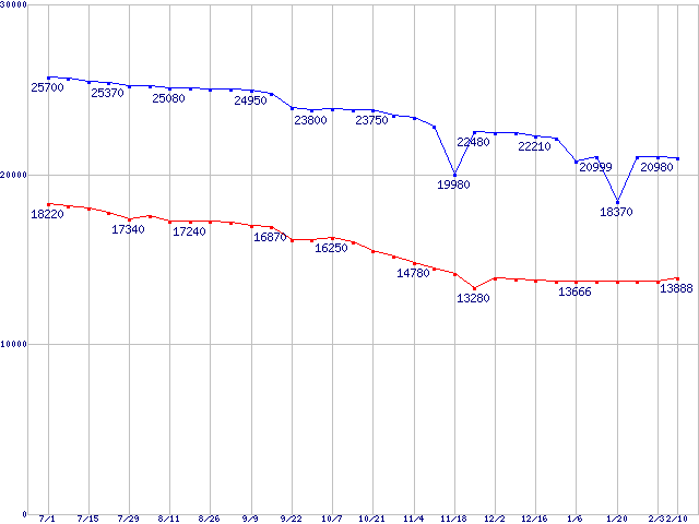 | [↑前グラフ]: | DiamondMax Plus 8 (7200rpm,2MB,Ultra ATA/133)の最安値推移 |