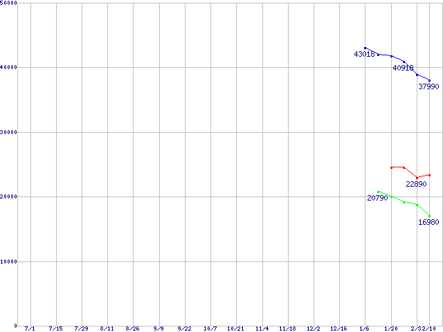 | [↑前グラフ]: | Barracuda 7200.7 (7200rpm,Serial ATA/150,8MB,80GB/Platter)の最安値推移 |