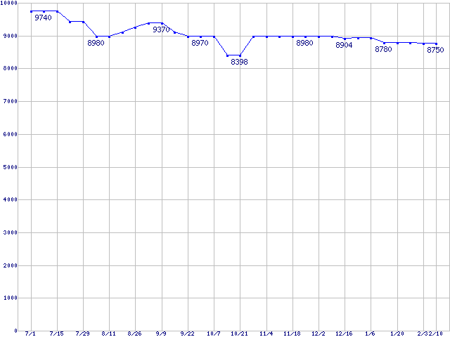 | WD Caviar (7200rpm,Serial ATA/150,8MB)の最安値推移 |