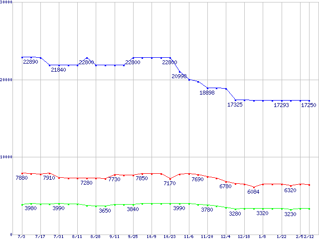 | [↑前グラフ]: | PC4000(DDR500) DDR SDRAM DIMMの最安値推移 |