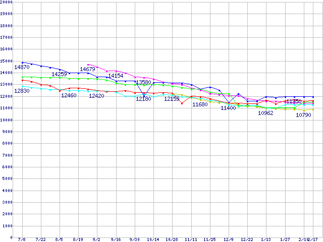 | ※製品名をクリックすると個別のグラフを表示します ※点線部は販売店が確認できなかった、または調査データがないことを示します | |