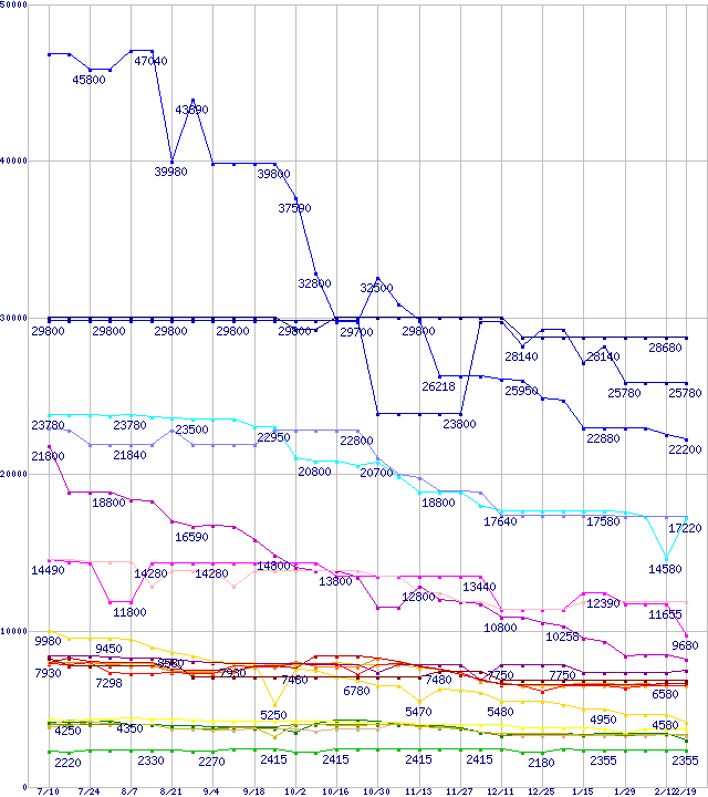 メモリ主要製品の最安値推移
