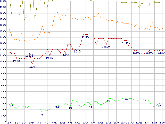 | PC2700 DDR SDRAM 512MB(CL2.5) ECC Registeredの価格推移 |