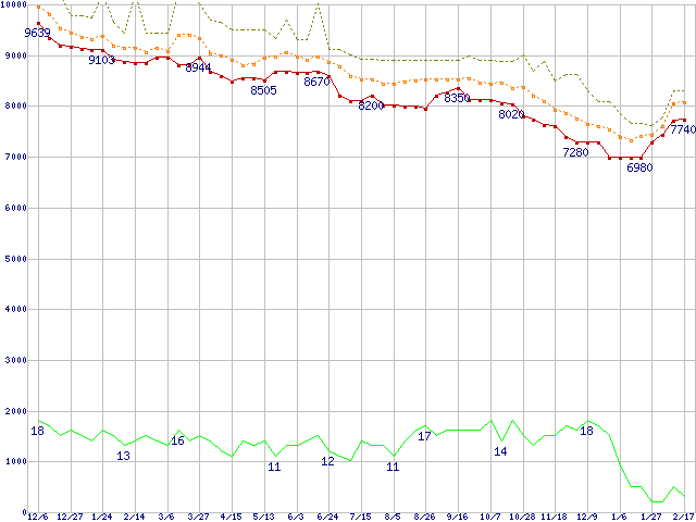 | ※このグラフは過去のデータも税率5%相当に調整した税込み相当額のグラフです。 税率変更や、総額表示方式導入(2004年4月)の影響は除いています。 | |||||||||||||||